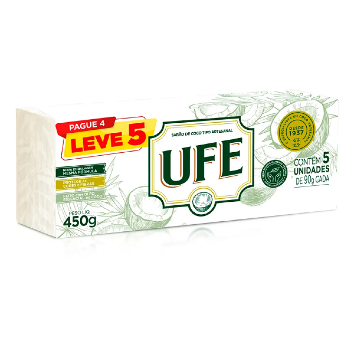 2. SABÃO DE COCO UFE COM 5 UNIDADES DE 90 GRAMAS (450 GRAMAS TOTAL)