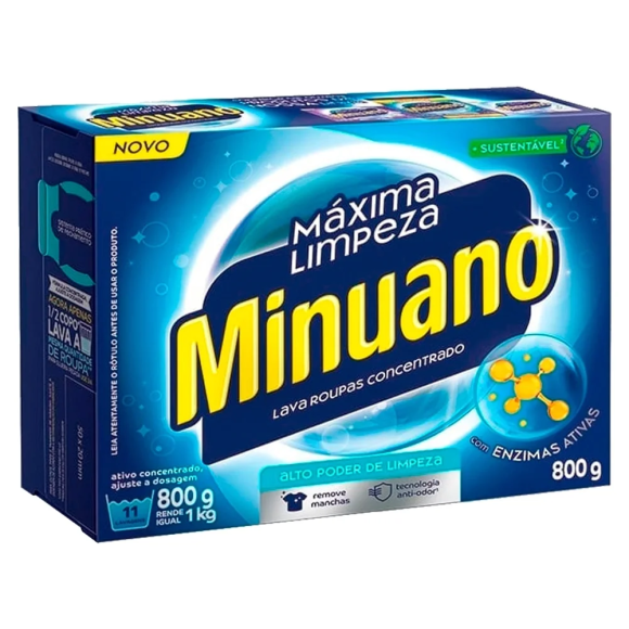 A EMBALAGEM DE 800 GR GARANTE LONGO RENDIMENTO, SENDO PERFEITO PARA USO DIÁRIO EM MÁQUINAS DE LAVAR E LAVAGENS MANUAIS. O SABÃO PÓ MINUANO AZUL É IDEAL PARA TODOS OS TIPOS DE ROUPA, GARANTINDO EFICIÊNCIA NA LIMPEZA SEM DANIFICAR OS TECIDOS.