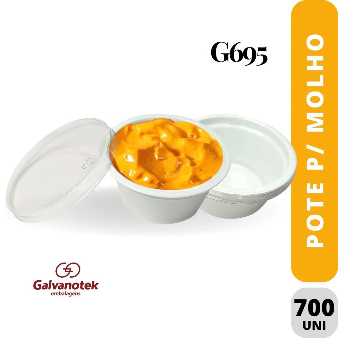 DESCRIÇÃO COMPLETA DO PRODUTO: O POTE PLÁSTICO G-695 BRANCO DA MARCA GALVANOTEK É UMA EMBALAGEM DESCARTÁVEL COM CAPACIDADE DE 30 ML, DESENVOLVIDA PARA ARMAZENAR E TRANSPORTAR PEQUENAS PORÇÕES DE MOLHOS, GELEIAS, MAIONESE, SHOYU E OUTROS CONDIMENTOS. FABRICADO EM POLIETILENO TEREFTALATO (PET), UM MATERIAL RESISTENTE E TRANSPARENTE, O POTE POSSUI TAMPA QUE GARANTE VEDAÇÃO SEGURA, EVITANDO VAZAMENTOS DURANTE O TRANSPORTE.