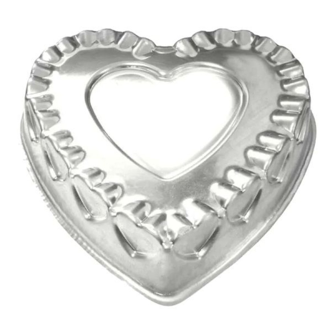 FORMA DE ALUMÍNIO FORMATO DE CORAÇÃO DECORADA, MEDINDO 33X7 CM, PERFEITA PARA BOLOS DE ANIVERSÁRIO, TORTAS E DOCES PERSONALIZADOS. FEITA COM MATERIAL RESISTENTE E LEVE, PROPORCIONA COZIMENTO UNIFORME E RESULTADO PROFISSIONAL. IDEAL PARA CONFEITEIROS