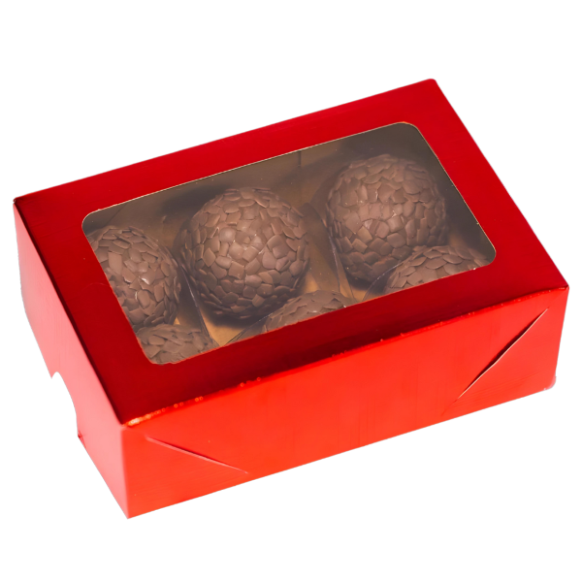2. CAIXINHA LAMINADA VERMELHO C/ VISOR PARA 6 DOCES - UNIDADE
