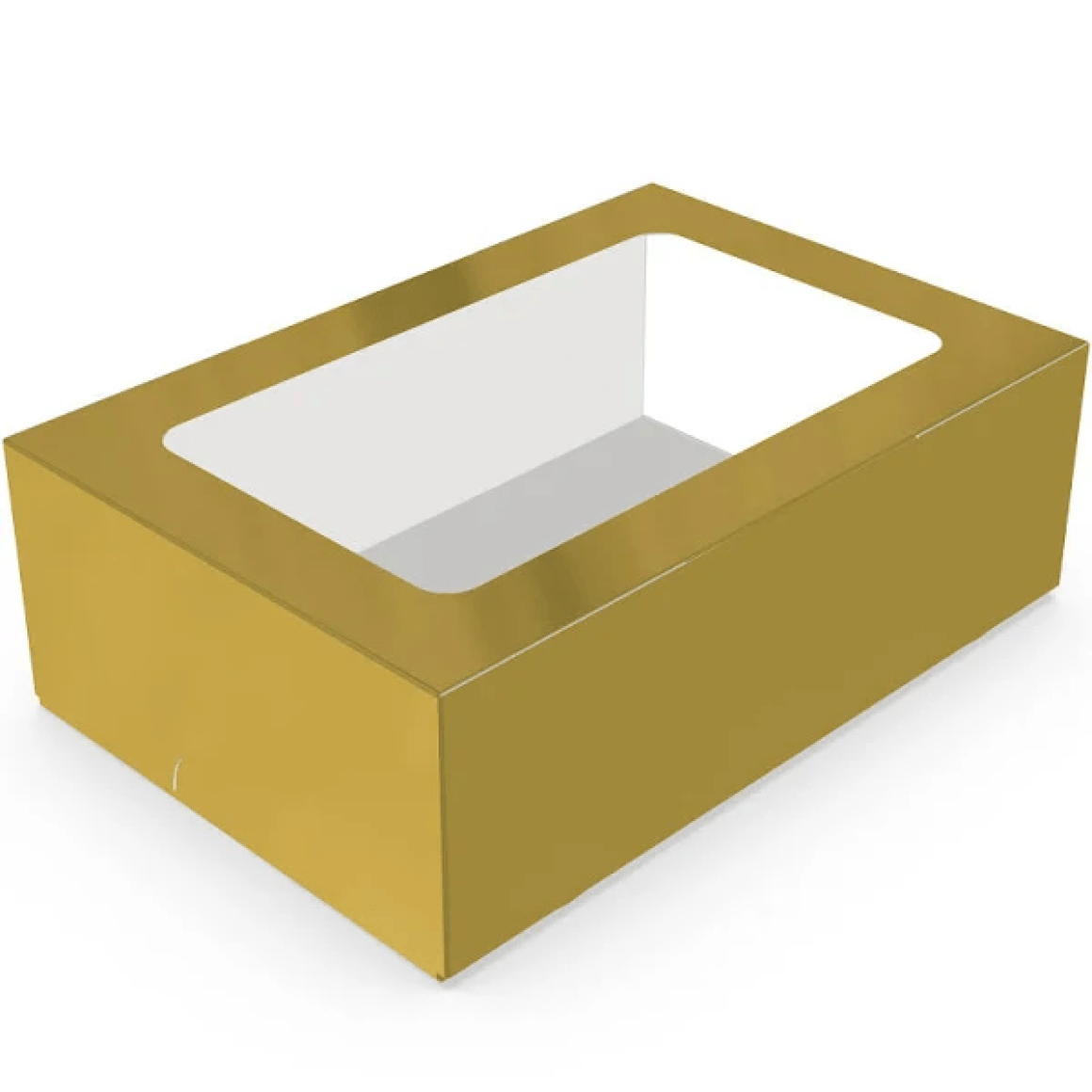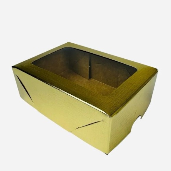 CAIXINHA LAMINADA OURO C/ VISOR PARA 6 DOCES