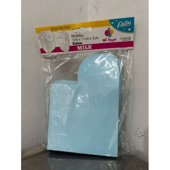 CAIXA MILK COM 08 UNIDADES, PRODUZIDA EM PAPEL CARTÃO RESISTENTE, IDEAL PARA EMBALAR DOCES, GULOSEIMAS, BRINDES OU LEMBRANCINHAS DE FESTAS. POSSUI FORMATO PRÁTICO E CHARMOSO, LEMBRANDO UMA CAIXINHA DE LEITE. ÓTIMA OPÇÃO PARA FESTAS INFANTIS, CASAMENTOS, ANIVERSÁRIOS, CHÁS DE BEBÊ OU EVENTOS TEMÁTICOS. PRODUTO LEVE, FÁCIL DE MONTAR E PODE SER PERSONALIZADO.